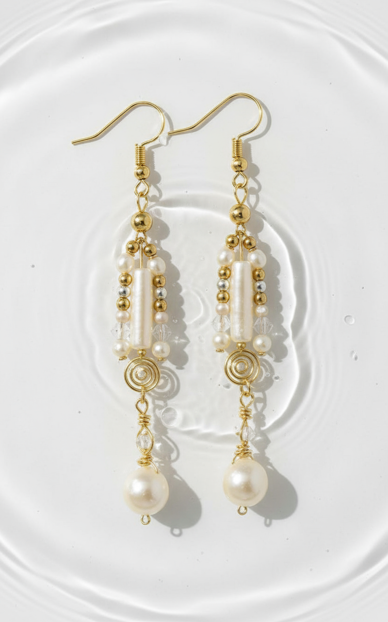 Delicate, dreamy, and effortlessly elegant — Pearl Whispers earrings capture the beauty of timeless grace. Each piece is meticulously handcrafted with lustrous pearls, gold-plated beads, and sparkling crystal accents, creating a soft melody of sophistication in every detail.